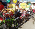 The children representing many countries rode on tricycles through their urban village and past their homes.