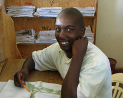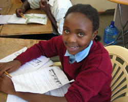 Joseph takes a moment from his studies to pose for a photograph. He is 15 and needs extra help with his work but always has a smile on his face.